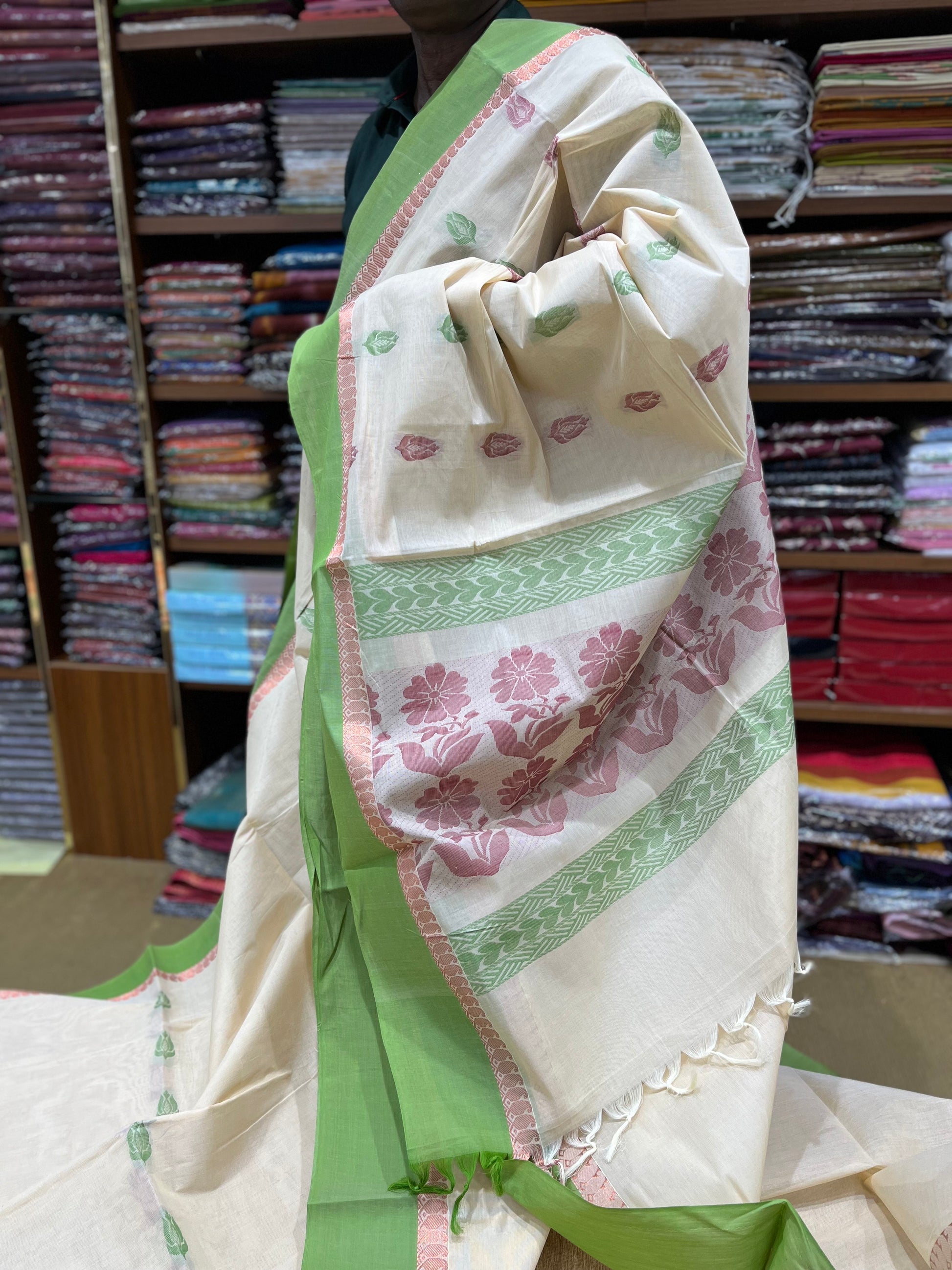 This premium cotton saree offers the perfect balance of elegance and comfort. Woven from high-quality cotton, it drapes beautifully while keeping you cool and at ease throughout the day. The subtle design is enhanced by delicate small tassels on the pallu, adding a graceful finishing touch. Ideal for everyday wear, office, or casual gatherings—this saree keeps you effortlessly stylish.